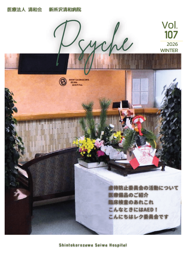 皆さんと「心」を繋ぎたいという願いを込めて、当院の活動をお知らせする便りを「プシュケ」と命名しました。多くの方々に読まれること、そしてご意見を頂けますことを願っております。